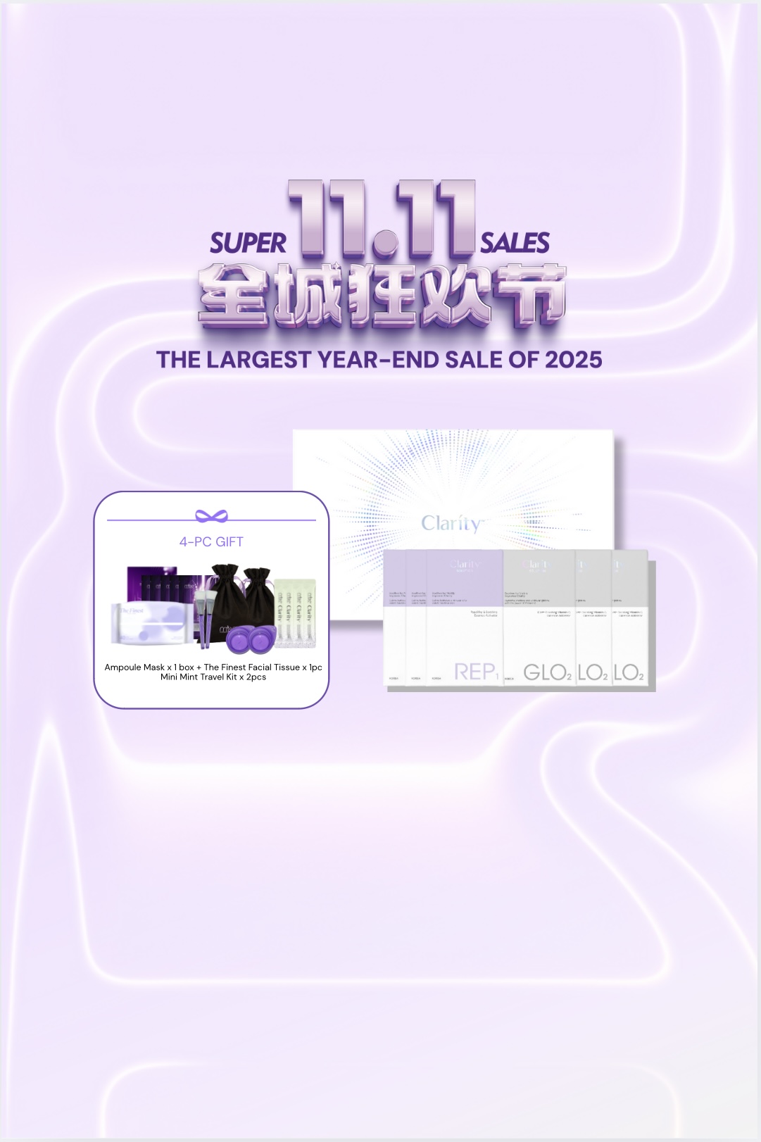 Purchase Any 6 Boxes (Claríty Solution / Claríty Mint / Claríty) 4-PC GIFT: - Ampoule Mask x1 box - The Finest Facial Tissue x1 pc - Mini Mint Travel Kit x2 pcs 【Super Lucky Draw】 Every single invoice that reaches the specified spending amount, you will receive an additional Lucky Draw Ticket: - Spend RM1100 [GOLD TIER] = Gold Tier Lucky Draw Ticket X1 - Spend RM2100 [PLATINUM TIER] = Platinum Tier Lucky Draw Ticket X1 - Spend RM3100 [DIAMOND TIER] = Gold Tier Lucky Draw Ticket X1 + Platinum Tier Lucky Draw Ticket X1 Date: 20/10/2025 - 11/11/2025 REMARKS: - Purchasing this package will automatically upgrade to MAE VIP. - All gifts are given out at random. Limited quantities available, first come, first served. - INVOICE NUMBER = LUCKY DRAW ENTRY. - Shipped within 3–5 working days. ** Our company reserves the right to make the final interpretation and amendments of the event rules.